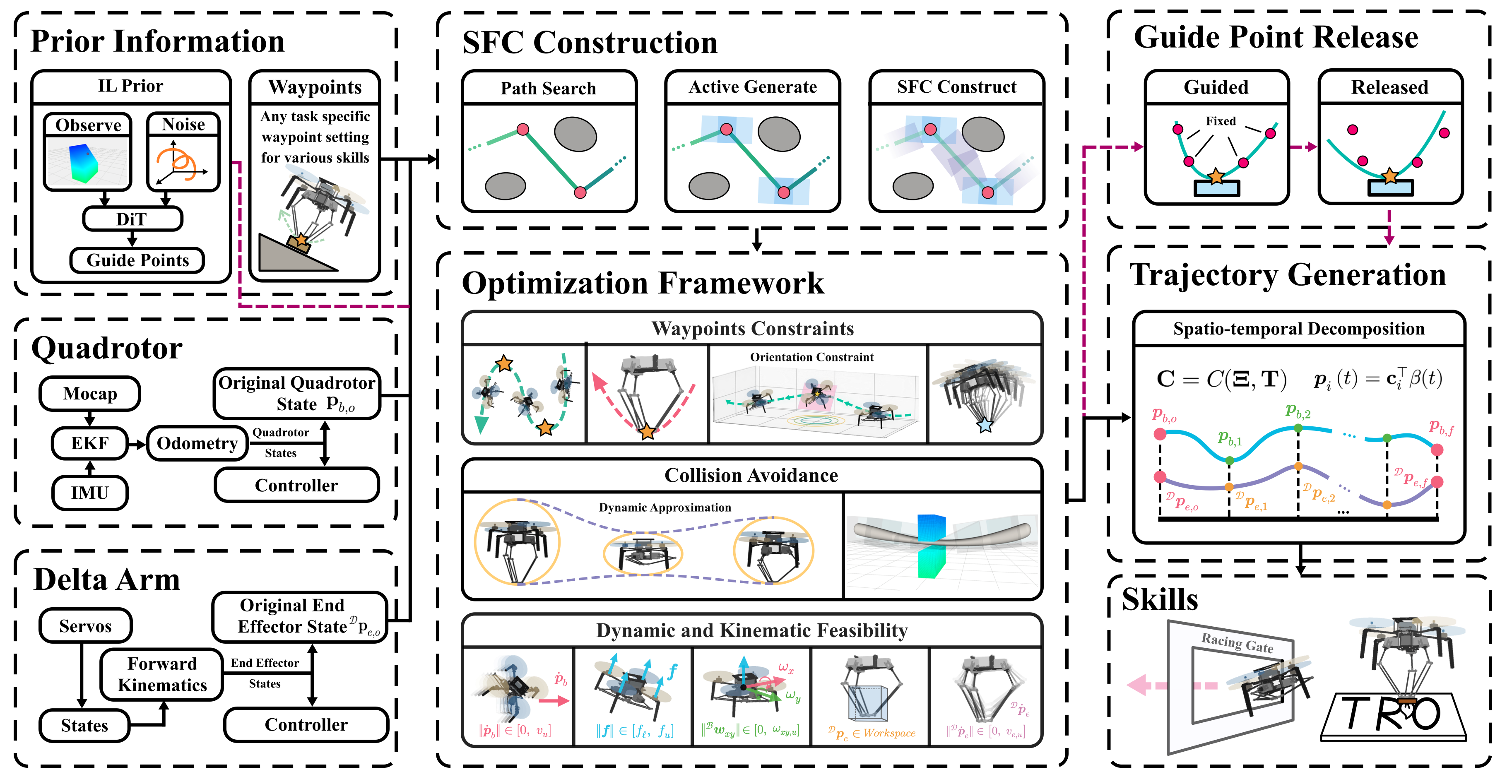 Expressive motion planning for Aerial Manipulators (AMs) is essential for tackling complex manipulation tasks, yet achieving coupled trajectory planning adaptive to various tasks remains challenging, especially for those requiring aggressive maneuvers. In this work, we propose a novel whole-body integrated motion planning framework for quadrotor-based AMs that leverages flexible waypoint constraints to achieve versatile manipulation capabilities. These waypoint constraints enable the specification of individual position requirements for either the quadrotor or end-effector, while also accommodating higher-order velocity and orientation constraints for complex manipulation tasks. To implement our framework, we exploit spatio-temporal trajectory characteristics and formulate an optimization problem to generate feasible trajectories for both the quadrotor and manipulator while ensuring collision avoidance considering varying robot configurations, dynamic feasibility, and kinematic feasibility. Furthermore, to enhance the maneuverability for specific tasks, we employ Imitation Learning (IL) to facilitate the optimization process to avoid poor local optima. The effectiveness of our framework is validated through comprehensive simulations and real-world experiments, where we successfully demonstrate nine fundamental manipulation skills across various environments.